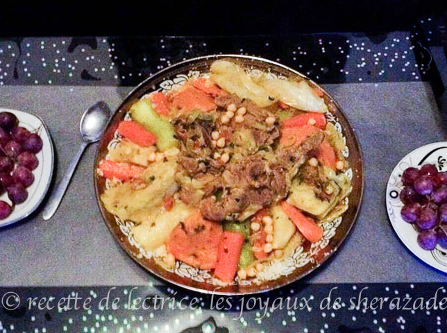 Les recettes sont multiples car la combinaison de légumes sont nombreuses (courgettes, carottes, céleri, potiron, fèves, cardes, navets, terfass, haricots, oignons, tomates, petits pois, etc…).