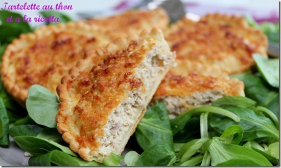 Quiche au thon  présentée en version individuelle, très simple à faire  et délicieuse. Vous pouvez servir ces quiches au thon ou tartelettes au thon en entrée ou en plat avec une bonne salade. C’est un régal !. J’ai utilisé de la ricotta. Un fromage qui s’associe à merveille avec le thon. Mais, vous pouvez très bien le remplacer avec du fromage  blanc